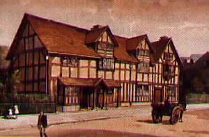Baptised in Holy Trinity Church on St George's Day, 23 April 1564, the eldest son of John Shakespeare and Mary Arden, William Shakespeare as a lad went to the newly reformed King Edward VI Free Grammar School at Stratford. In 1582 he married Anne Hathaway of Shottery and then - according to some - left hurriedly for London in 1585, a schoolmaster on the run for poaching deer from the Earl of Warwick's estates nearby. By 1596 - exactly 400 years after the founding of Stratford-upon-Avon - William Shakespeare had become established as a court dramatist and was writing "A Midsummer Night's Dream" and "The Merchant of Venice". In "A Midsummer Night's Dream", he thought back to his tradesman's roots, and ends the drama with Bottom the Weaver and fellow traders getting up a play for the Duke of Athens and local gentry - who are more than a little supercilious about their hamish acting. "The Merchant of Venice" in its own way also draws upon business life: the point at issue is whether a bond to forfeit "a pound of flesh" if three thousand ducats are not repaid by the due date is to be interpreted literally. This same year of 1596 saw William Shakespeare able to obtain a grant of Arms for his father, so that John Shakespeare - variously a Stratfordian glover, butcher and wool dealer, official ale taster and Bailiff (Mayor) - at last became a gentleman. Sadly this year of status and success was also one of sorrow for William and Anne: their only son, Hamnet, died on 11 August 1596 at the age of eleven and a half. Eventually William Shakespeare himself retired back to New Place, Church Street, opposite the Guild Chapel and his old school, and died on the day of his birth, 23 April, in 1616. By 1623, when his wife died, a bust in his memory had been erected near his tomb in Holy Trinity Church - where hundreds of townsfolk and admirers led by The Worshipful the Mayor and Councillors pay floral tribute each April.