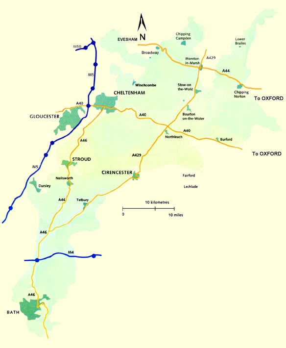 Take Exit 9 at Tewkesbury follow A46 to Evesham follow signs to Broadway